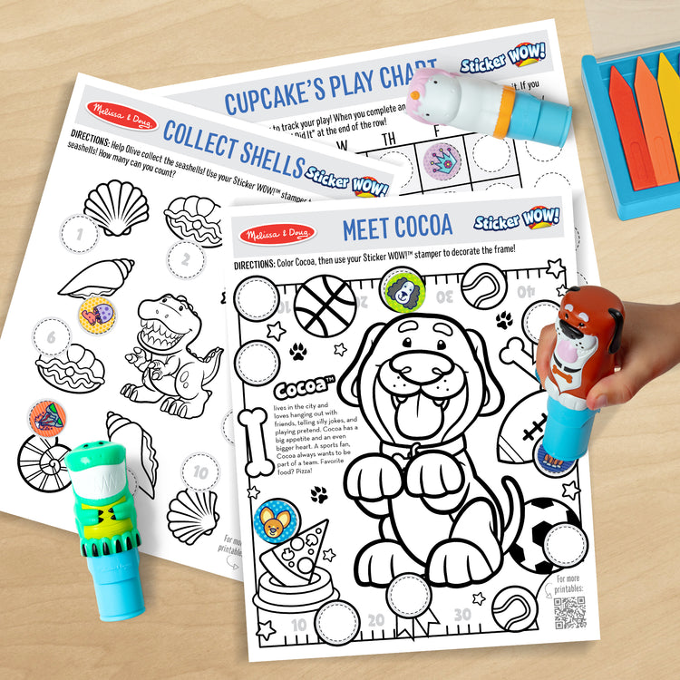 - Melissa & Doug Sticker WOW!™ is a whole new way to play with stickers – use the cute, collectible character to stamp favorite things-themed stickers on the 24-page Ice Cream activity pad, the additional 24-page mini activity pad, and on other creative art projects