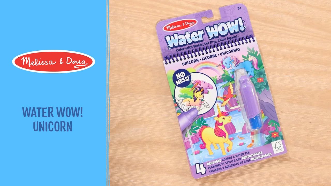 - Use the refillable chunky water pen to color with water and reveal vibrant colors on 4 unicorn-themed spiral-bound coloring boards